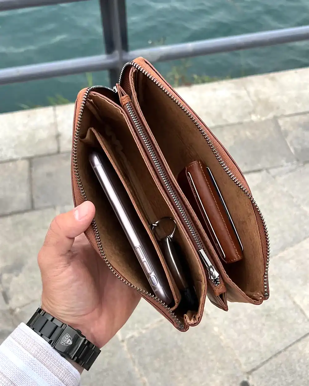 - sınıf dana derisi ve kaliteli işçilikle hazırlanan bu el çantası, geniş iç hacmi ve özel telefon bölmesiyle günlük hayatınızı kolaylaştırır. Hem şık bir aksesuar hem de fonksiyonel bir taşıma çözümü arayanlar için minimalist bir deneyim sağlar.