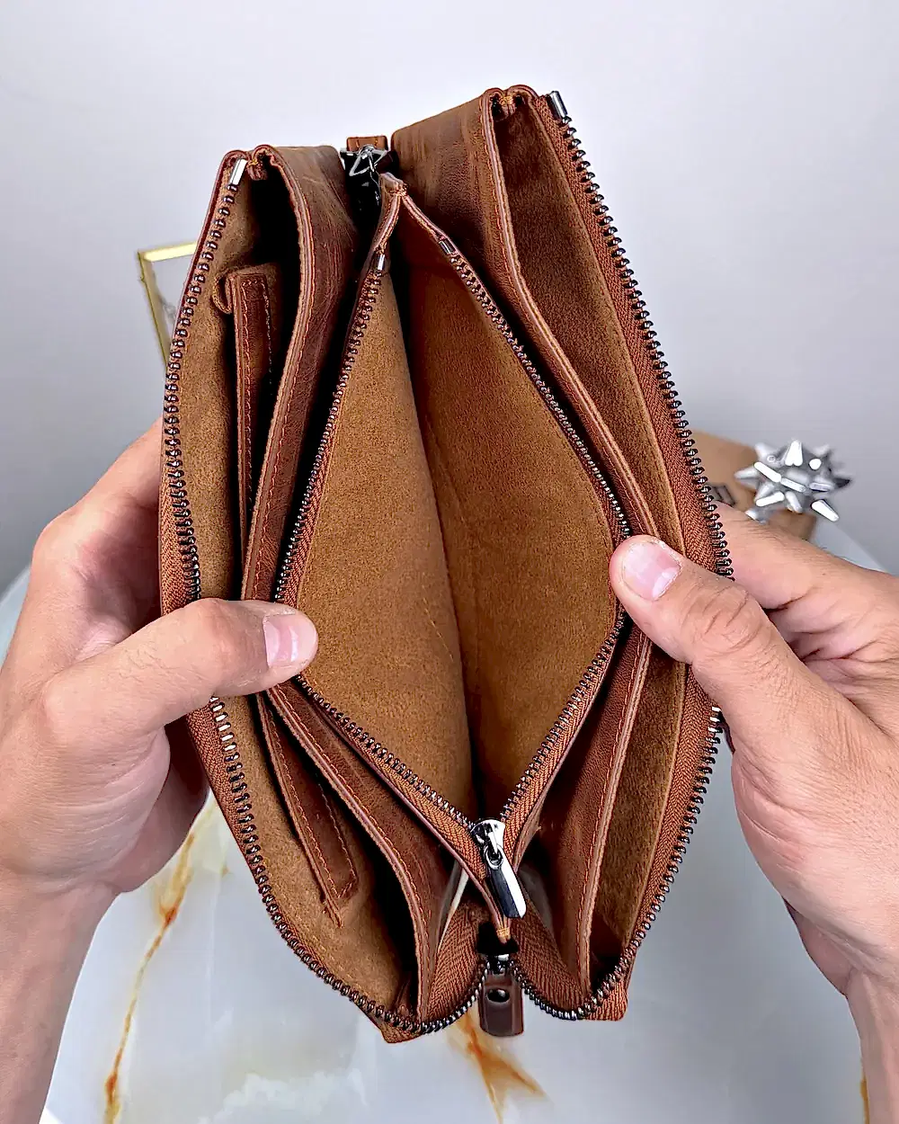 Telefonum sigara paketim anahtarlarım ve ufak cüzdanım içerisine rahat bir şekilde sığıyor, kullanışlı bir ürün. Deri kalitesi olarak güzel duruyor
