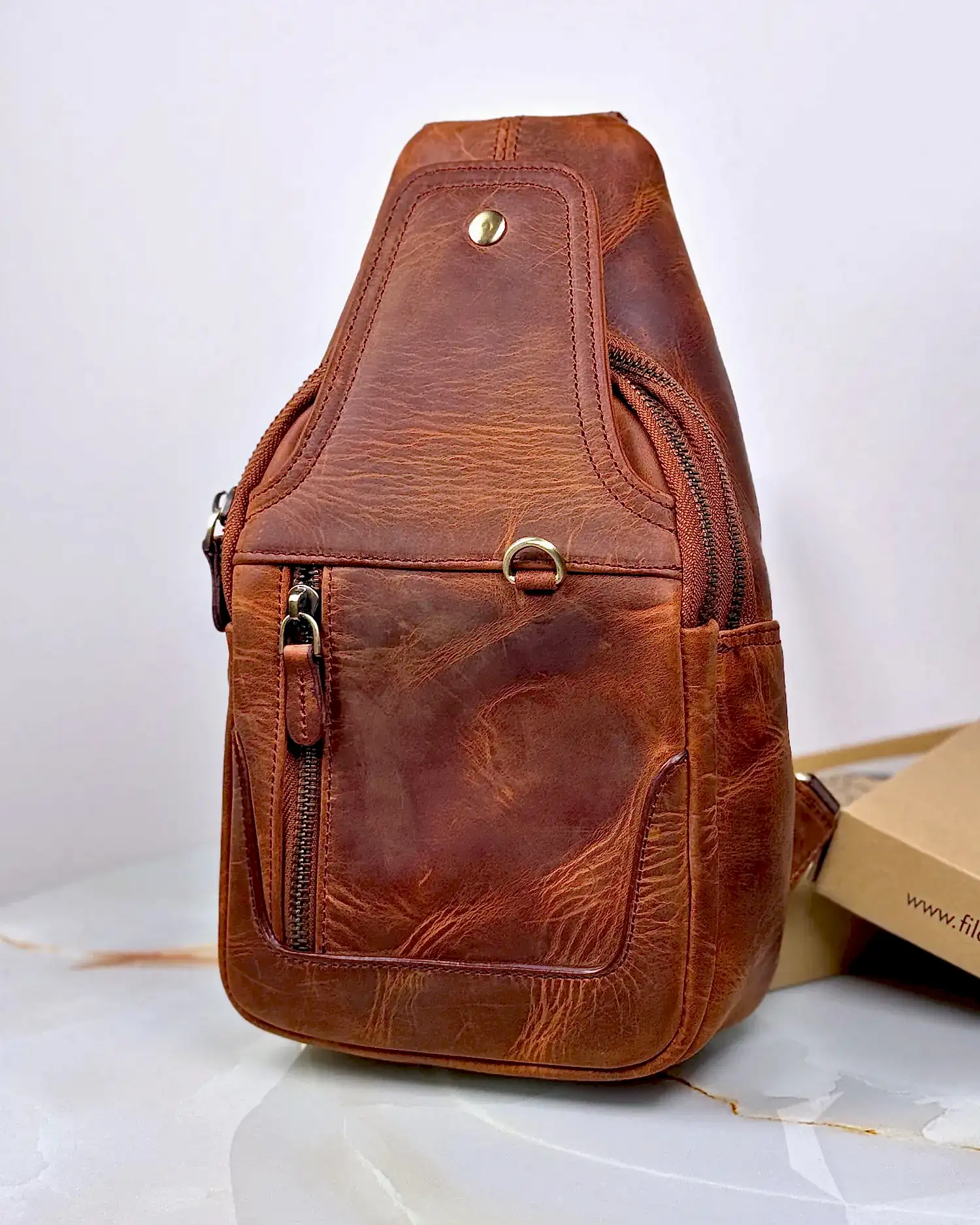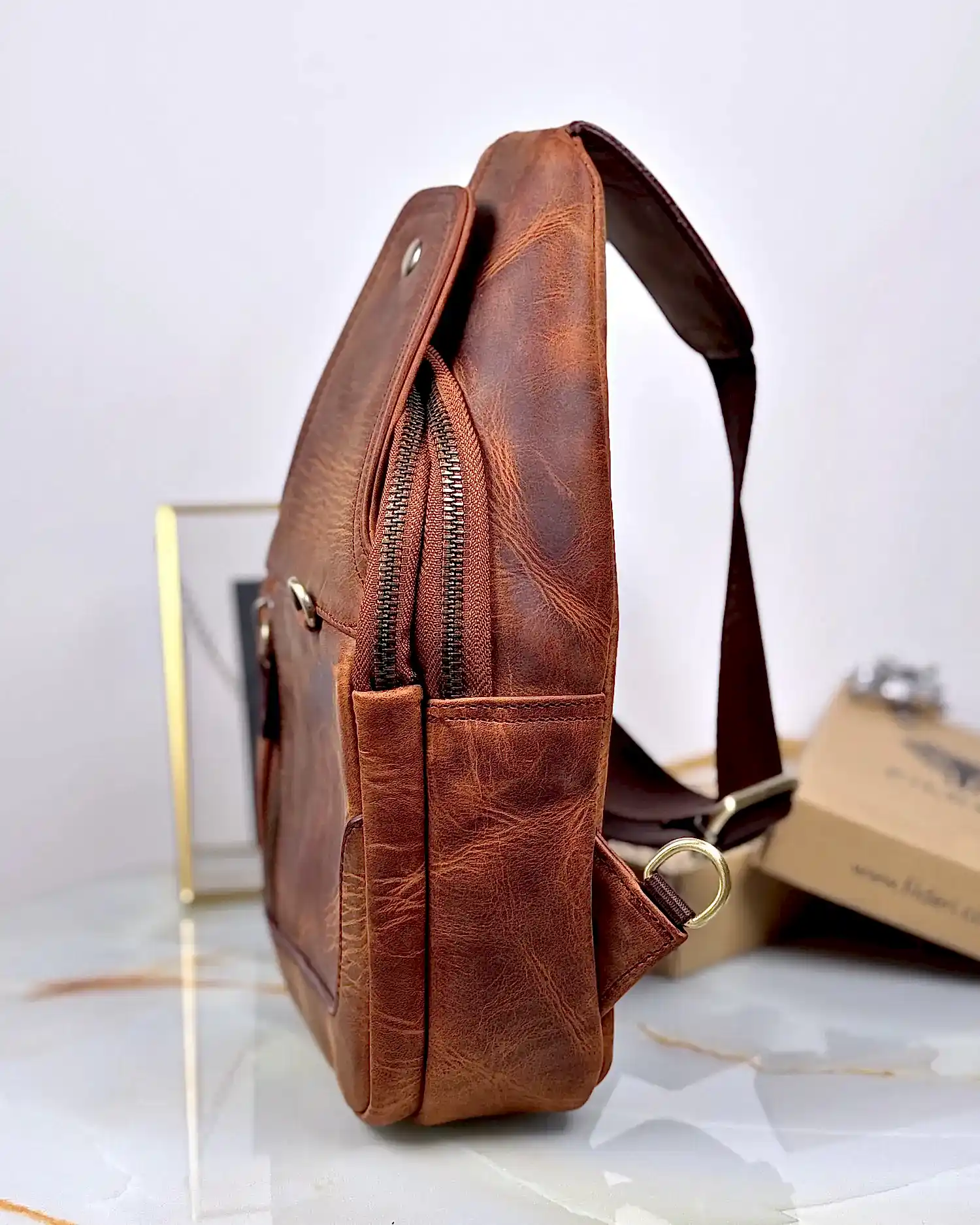 Benzersiz tasarıma sahip vintage el yapımı çantamız, hakiki derinin doğal dokusunu eskitme tekniğiyle buluşturuyor. Her çanta, usta zanaatkarlarımız tarafından özenle üretildiği için kendine has karaktere sahiptir.